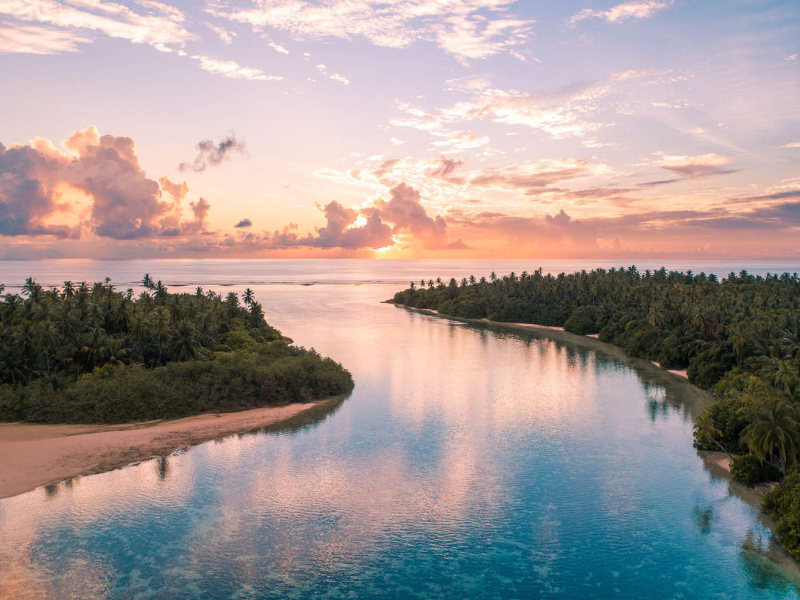 Alimatha Island, located in the Vaavu Atoll of the Maldives, is a popular tourist destination known for its stunning natural beauty, including white-sand beaches, crystal-clear waters, and vibrant coral reefs teeming with marine life.