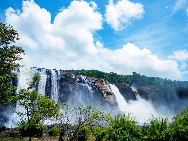 Visit the majestic Athirappilly Waterfalls, Kerala’s largest and most scenic falls.